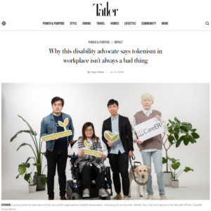 We are deeply grateful to Tatler Asia for featuring our work and mission in their recent article, “Why this disability advocate says tokenism in workplace isn’t always a bad thing”. The piece highlights the journey of our co-founder and CEO, Walter Tsui, and the impact CareER in promoting inclusivity for highly educated people with disabilities and SEN in the workplace. It sheds light on important topics such as tokenism and the importance of Disability Inclusion in the workplace.